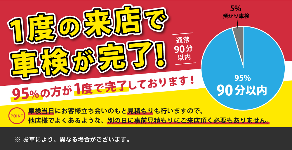 ※車検にかかるお時間は、お車により異なる場合がございます。